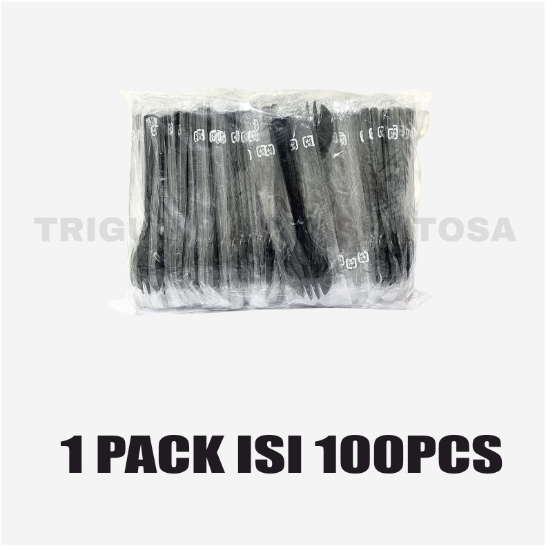 Spork Sendok Garpu 2 in 1 Hitam Pack 100pcs Harga Rp. 20100 untuk 100 pcs per Pack = Rp. 201 / pcs 1 pack isi = 100 pcs