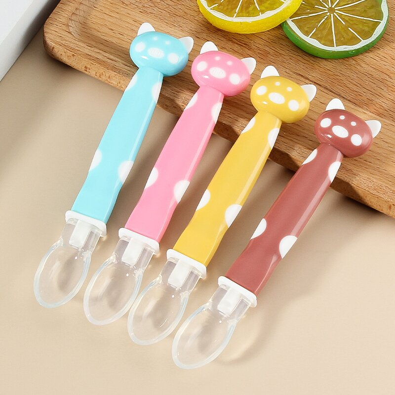 Detail Sendok Katun makan bayi Lentur silikon Tahan Panas bentuk kartun peggy lucu Baby safety spoon / sendok mpasi / sendok lentur anak
