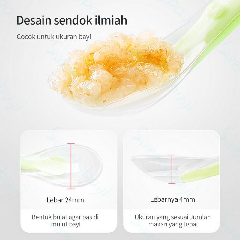 Pegangan anti selip, kepala sendok lembut dan dapat ditekuk untuk menghindari cedera pada mulut bayi