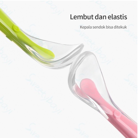 *Fitur Menggunakan bahan silikon food grade, BPA Free, aman untuk digunakan bayi Pegangan anti selip, kepala sendok lembut dan dapat ditekuk untuk menghindari cedera pada mulut bayi