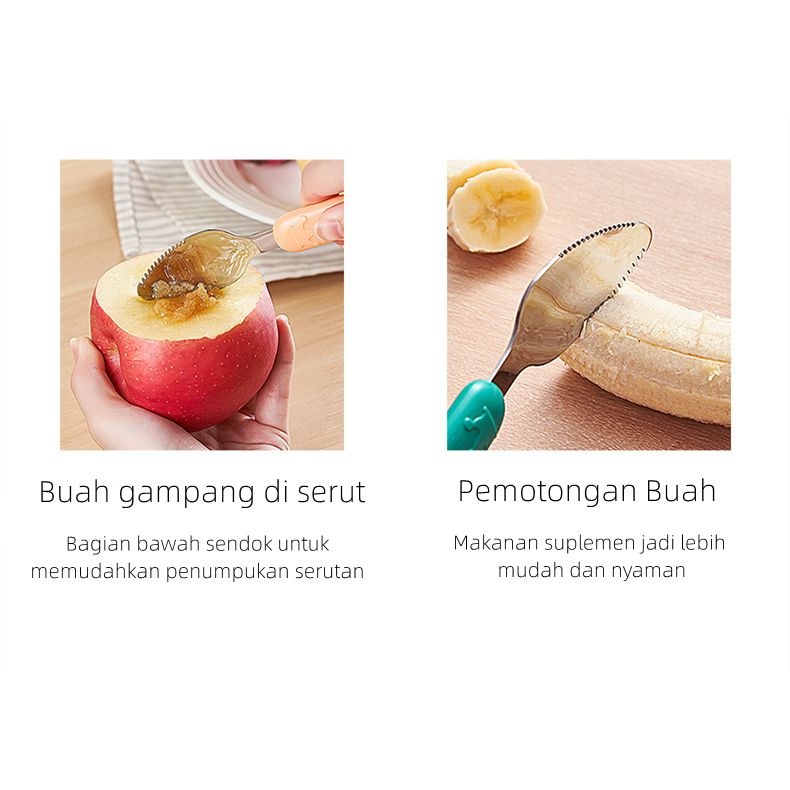 Detail Sendok Makan Buah Bayi 2IN1 / Sendok Penghalus Kikis Pengeruk Buah Makan MPASI Bayi Tepi Gerigi / Baby Fruit Scraper Spoon CJ13