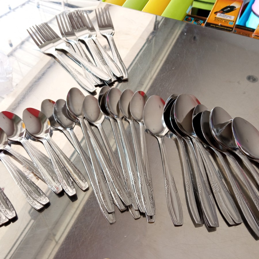 Bahan: Stainless Tebal: 1mm (cukup tebal tidak mudah bengkok) Panjang 17 Cm Ukuran: Sendok Makan