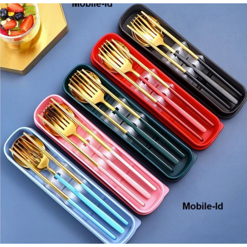 Bakindo Set Alat Makan Korea Stainless, Box Sendok Garpu Sumpit Gold 4 in 1
