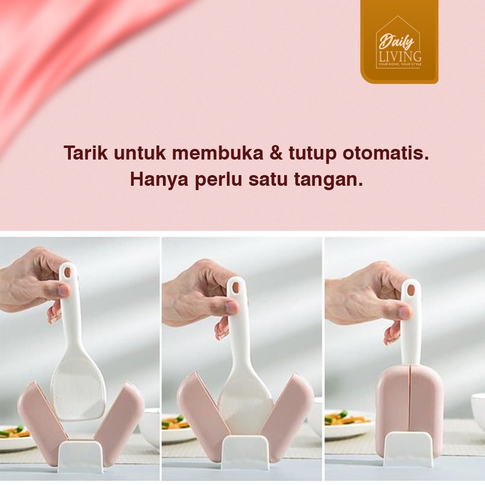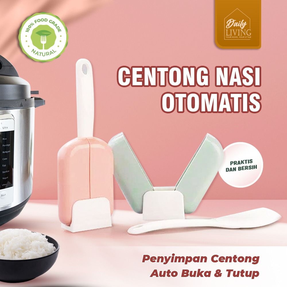 Detail Sendok Nasi Penutup Otomatis Tempat Centong Nasi Otomatis Daily Living Anti Debu