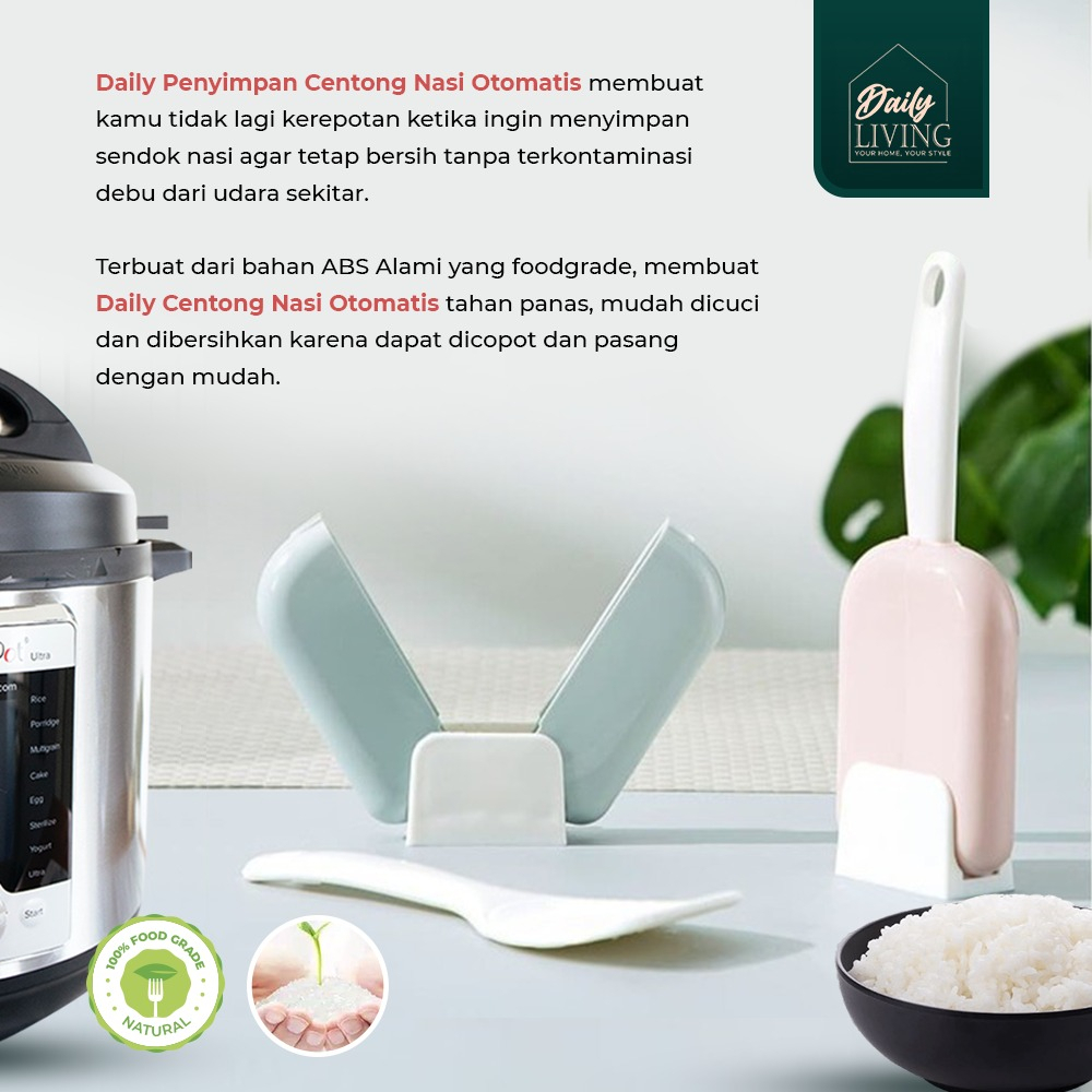 Daily Living Centong Nasi Otomatis Daily Penyimpan Centong Nasi Otomatis membuat kamu tidak lagi kerepotan ketika ingin menyimpan sendok nasi agar tetap bersih tanpa terkontaminasi debu dari udara sekitar. Terbuat dari bahan ABS Alami yang foodgrade, membuat Daily Centong Nasi Otomatis tahan panas, mudah dicuci dan dibersihkan karena dapat di copot dan pasang dengan mudah. Keunggulan Daily Penyimpan Centong Nasi Otomatis: 1. Bahan food grade 2. Centong nasi tidak lagi asal taruh dan bekas nasi menempel dimana2 3. Mudah dibersihkan krn bisa copot pasang dengan mudah 4. Foodgrade 5. Dapur anda jadi terlihat lebih rapi dan tidak kotor