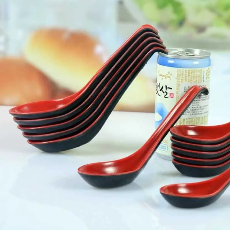 Sendok bebek seperti ini biasa digunakan untuk makanan berkuah seperti sup, ramen, bubur, dll. Sendok ini terbuat dari bahan plastik tebal yang berwarna merah dan hitam. Sendok bebek ini Food Grade. Sendok bebek dengan kait di ujungnya tangkai sehingga tidak mudah tercelup/terendam dalam mangkok.