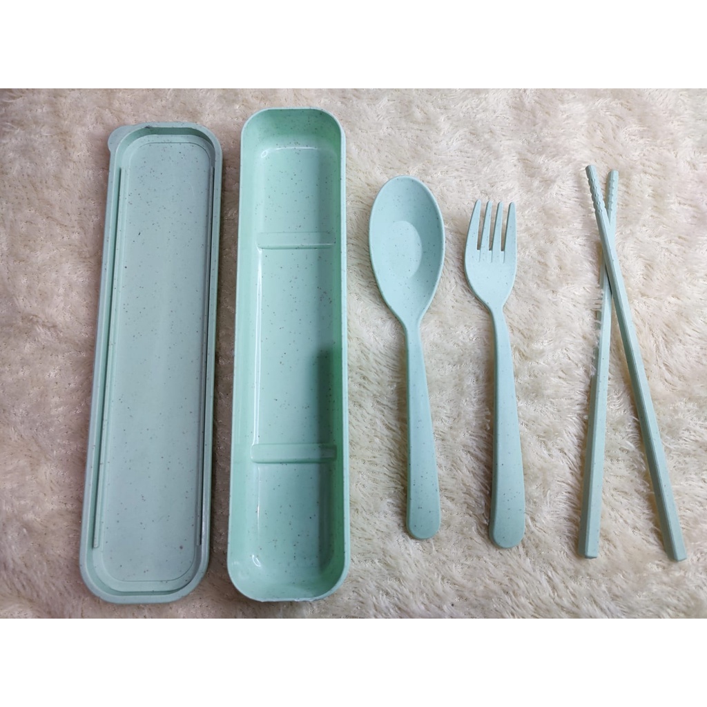 1 SET ITU ISINYA ADALAH : - 1 pasang Sumpit - 1 pc Sendok - 1 pc Garpu - 1 box penyimpanan