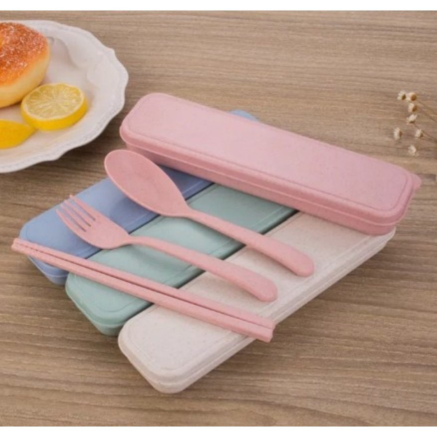 Perlengkapan Rumah > Peralatan Makan > Alat Makan > Sendok Set Garpu Sumpit sendok Bahan Jerami + kotak Sendok Set 3 in 1 Perlengkapan Makan COD / PR035