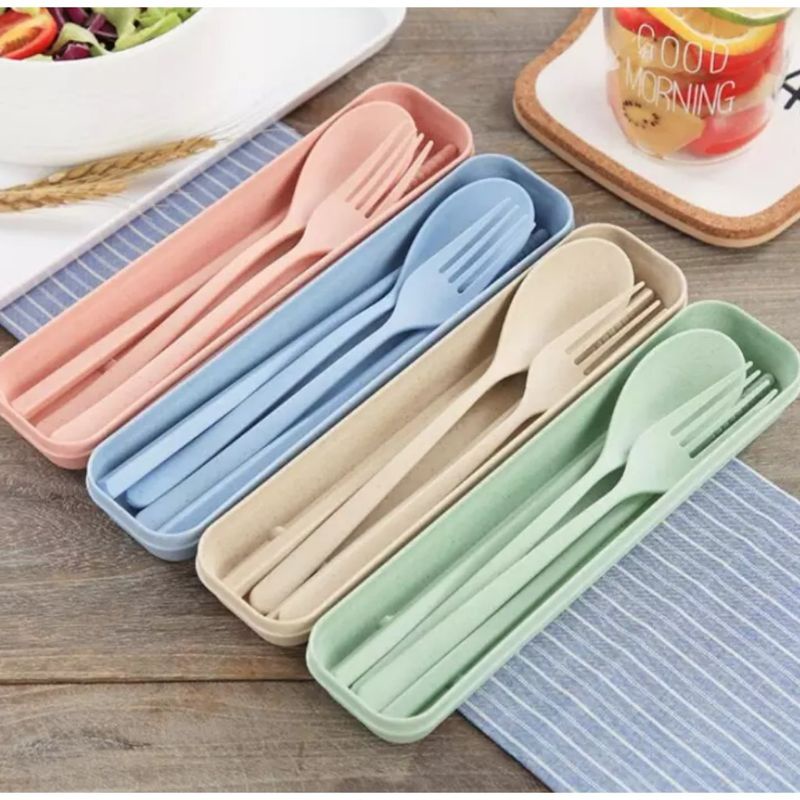 Detail SENDOK SET JERAMI ALAT MAKAN SOUVENIR KOREAN SUMPIT TRAVEL GANDUM UNIK KADO LUNCH BOX KOTAK MAKAN