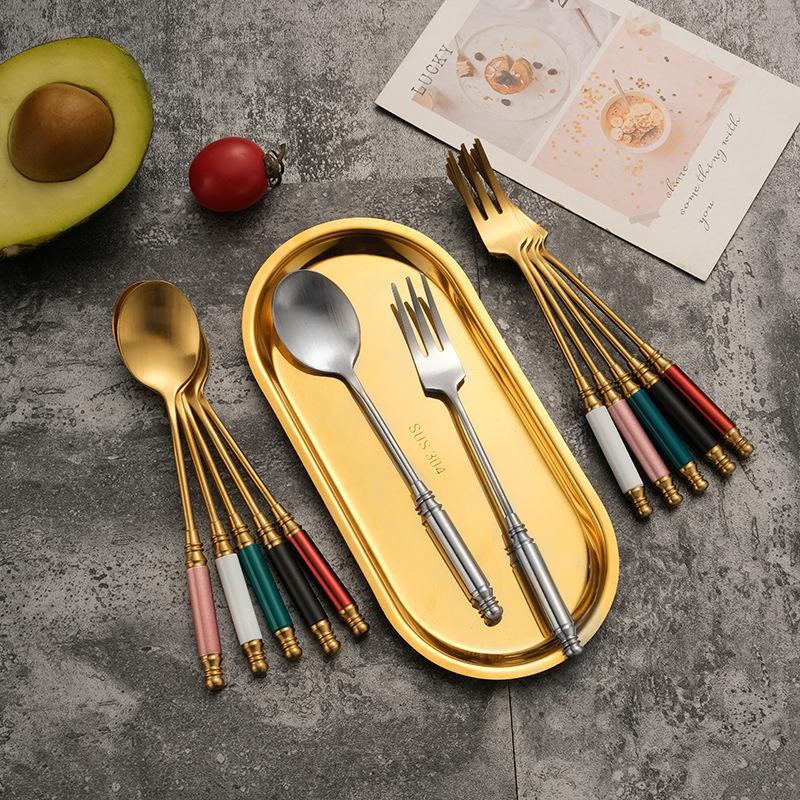 Perlengkapan Rumah > Peralatan Dapur > Perlengkapan Dapur Lainnya > Sendok Teh / Kopi / Es Krim / Dessert Bahan Stainless Steel 304 Warna Emas Gaya Retro Eropa