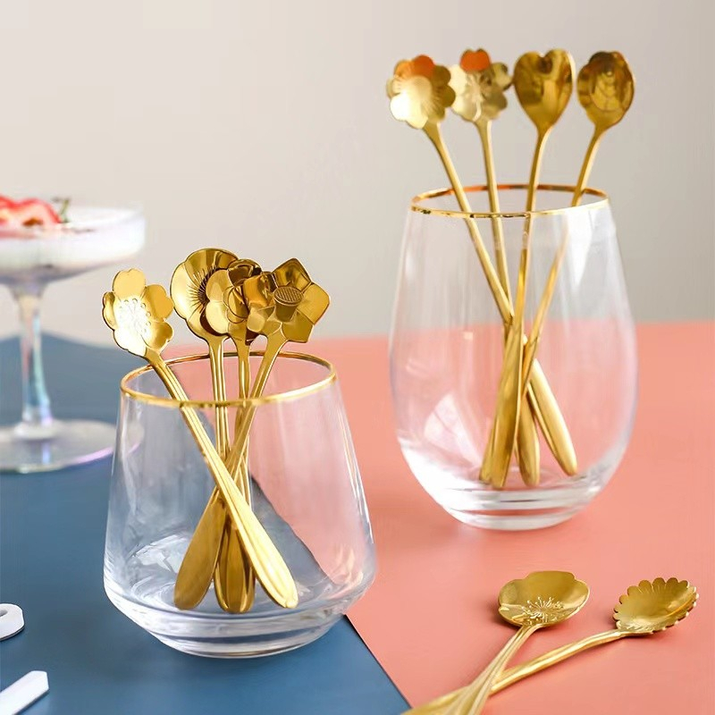 SENDOK TEH TEA KOPI SENDOK MAKAN DESSERT STAINLESS GOLD STEEL KOREA - BD