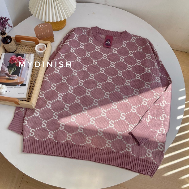 Detail Senny Oversize Sweater Rajut Korea Style Motif Huruf S