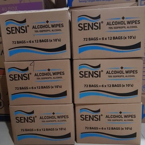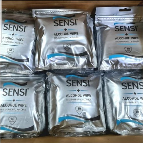 Sensi Alcohol Wipes 70% Isopropyl Alcohol Alcohol wipe yang bisa digunakan untuk antiseptic. Dapat digunakan untuk berbagai permukaan benda, termasuk bisa untuk penyeka kulit.
