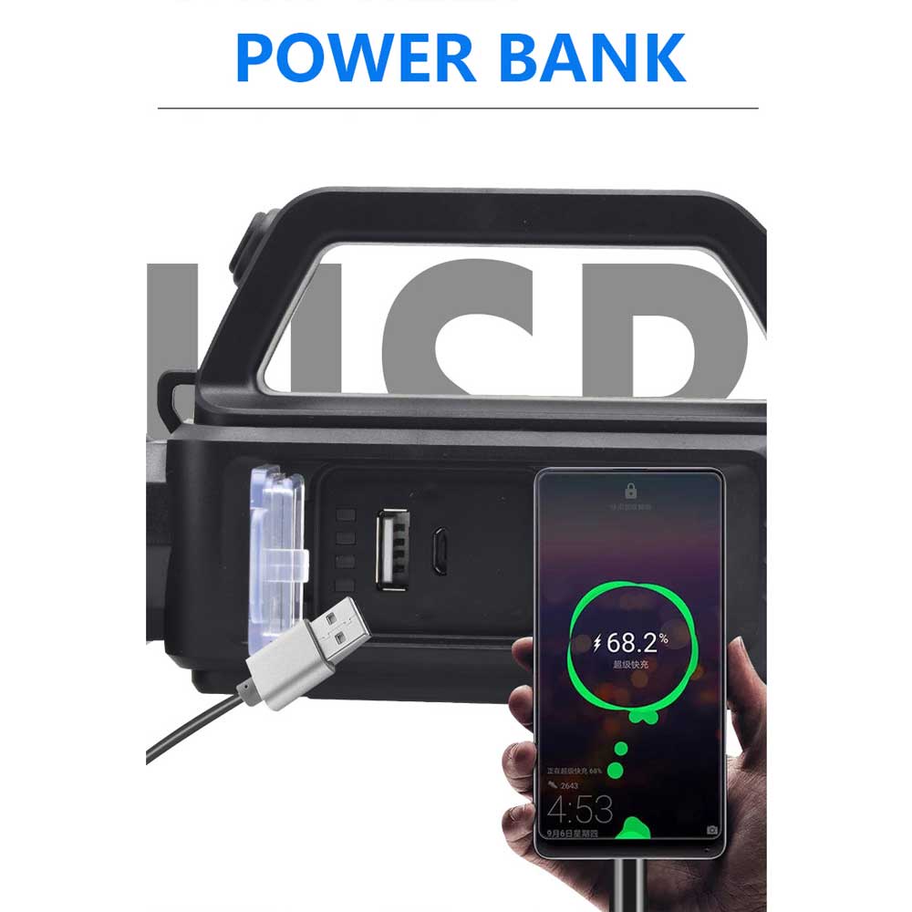 Senter LED dengan bentuk portable sehingga wajib untuk dibawa kemana saja Anda berpergian dan digunakan dalam keadaan darurat. Dapat digunakan sebagai power bank serta dilengkapi dengan indikator baterai.