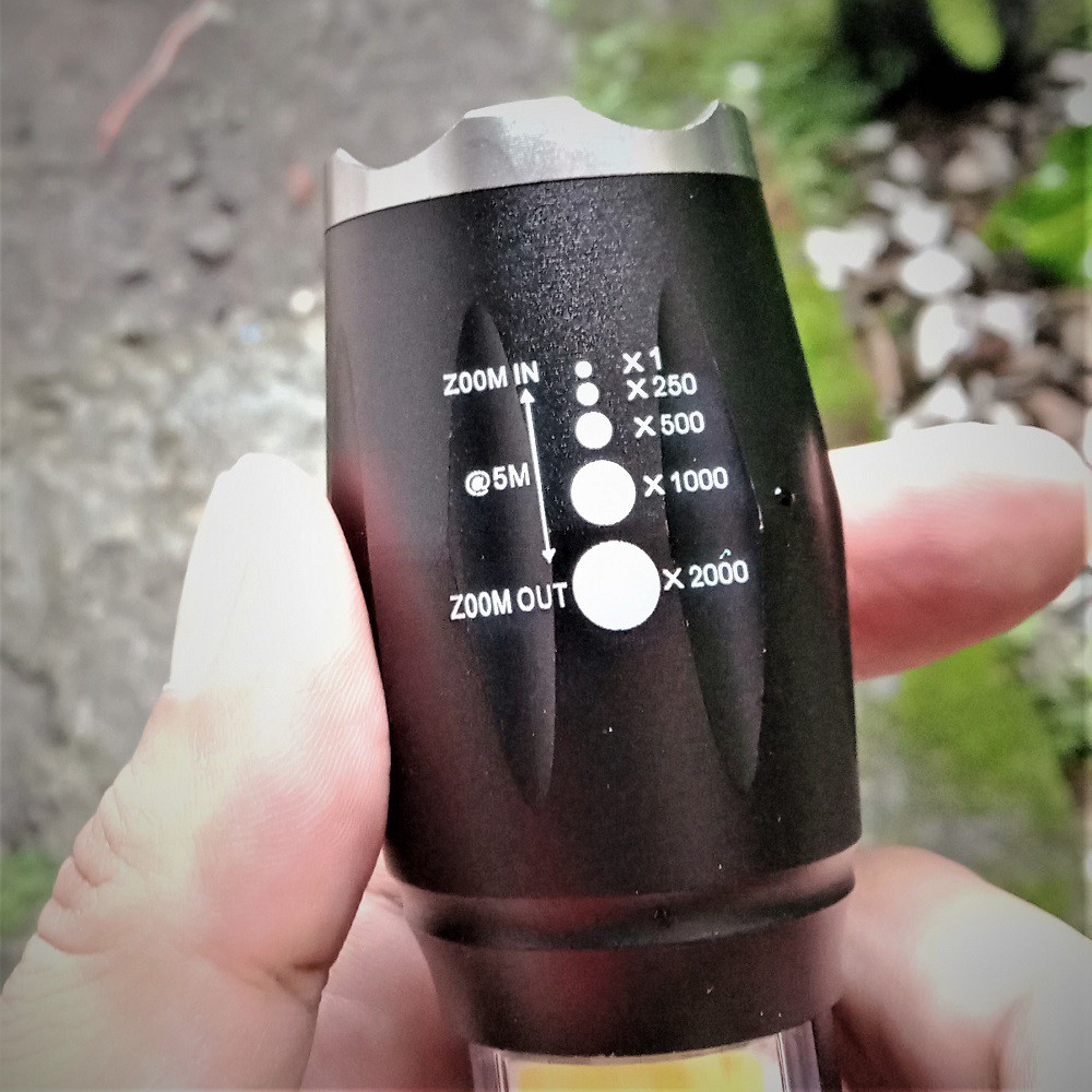 Senter ini memiliki 5 mode yaitu high, medium, low, strobe dan SOS.