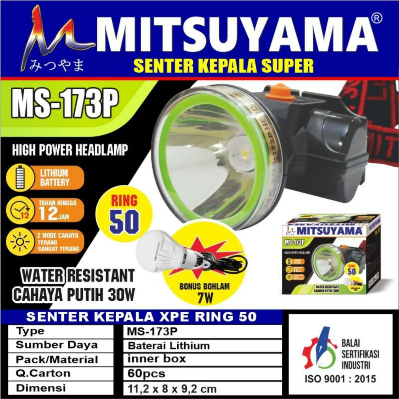 Detail Senter Kepala 30 Watt Mitsuyama MS 173P Headlamp Outdoor Hiking 30W Lithium Ring 50 Cahaya Putih