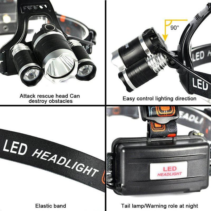 3 x Cree XM-L T6 Headlamp ini menggunakan 3 buah Cree XM-L T6 yang dapat menghasilkan cahaya hingga 5000 lumens.