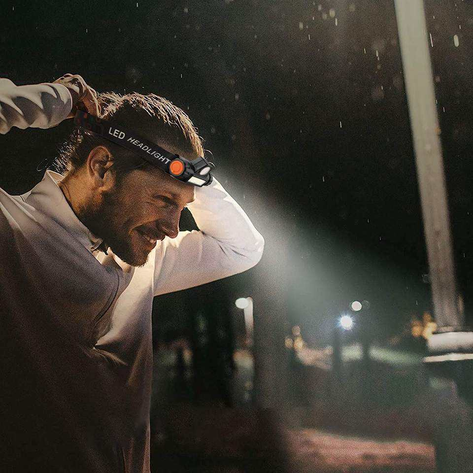Senter kepala mini yang super terang dengan 4 Mode : Senter biasa ( HI AND LOW ), Lampu Emergency Dan kelap kelip ( strobo )