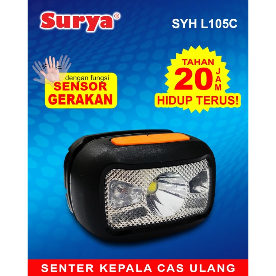 Detail Senter Kepala Surya SYH L105C - Senter Sepeda Sensor Tangan Surya 105C
