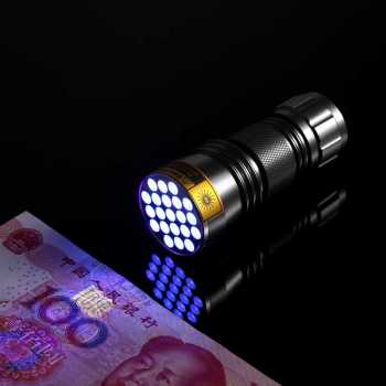 Senter Lampu Ultraviolet Alat Pendektesi Pengecek Uang Palsu Sidik Jari Multifungsi 395nm 21 LED / Lampu Senter Uv Alat Tes Test Deteksi Cek Uang Duit Palsu Sidik Jari Ktp Dokumen Kartu Elektronik BPKB SIM Forensik Eksploitasi Tambang Senter Ultraviolet