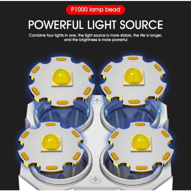 Detail Senter LED 4 Mata + COB Super Terang Charger USB / Senter LED 48 W + 20W L-S03