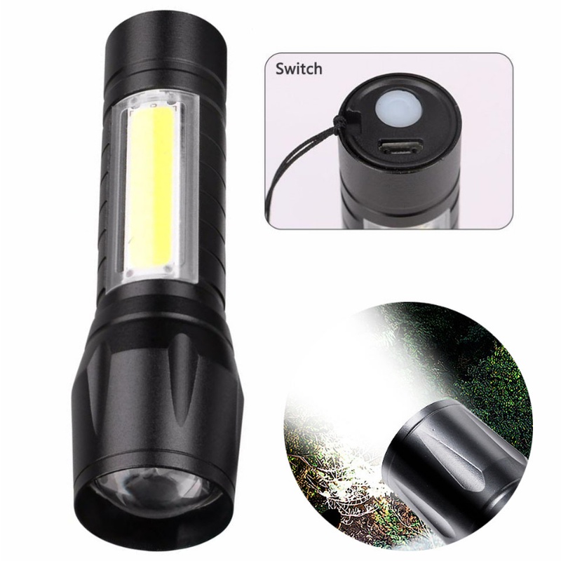 Detail Senter LED Portable COB Light/Zoom Baterai Bawaan USB Rechargeable 3mode Waterproof Emergency Torch