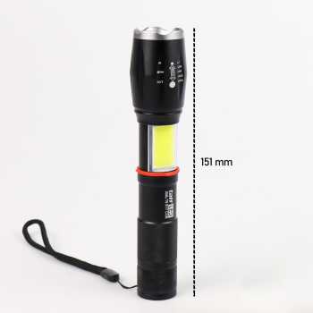 ============================= Spesifikasi TaffLED Senter LED Torch Cree XM-L T6 8000 Lumens Tipe LED : CREE XM-L T6 & COB Lumens : 8000 lumens Voltase : 3.7 V Tipe Baterai : 1 x 26650 / 1 x 18650 / 3 x AAA Material : Paduan Aluminium Dimensi Diameter Kepala: 33 mm Diameter Bodi: 28 mm Panjang Senter: 151 mm