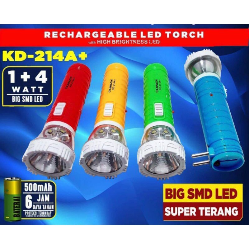 SENTER LED TORCH RECHARGEARBLE LED 1 + 4 WATT KAWACHI