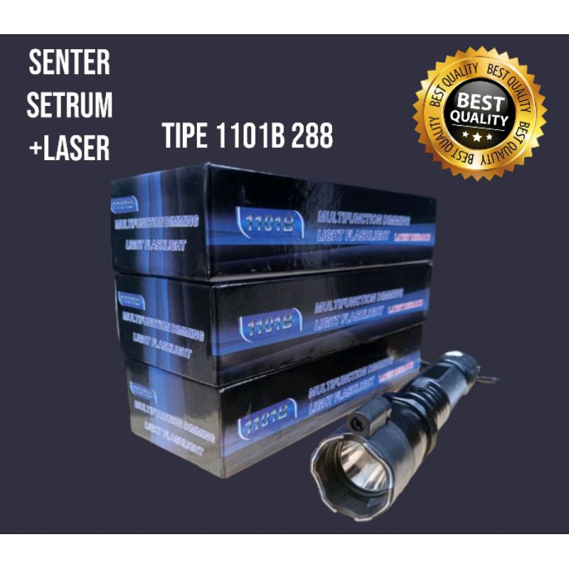Senter 1101 Multifungsi ======== foto real pict dijamin produk sesuai gambar senter LED lengkap dengan fitur alat kejut dan laser pointer. senter memiliki 3 mode lampu (terang,redup,strobbo) baterai tanam bisa di recharge (sudah tersedia kabel charger)