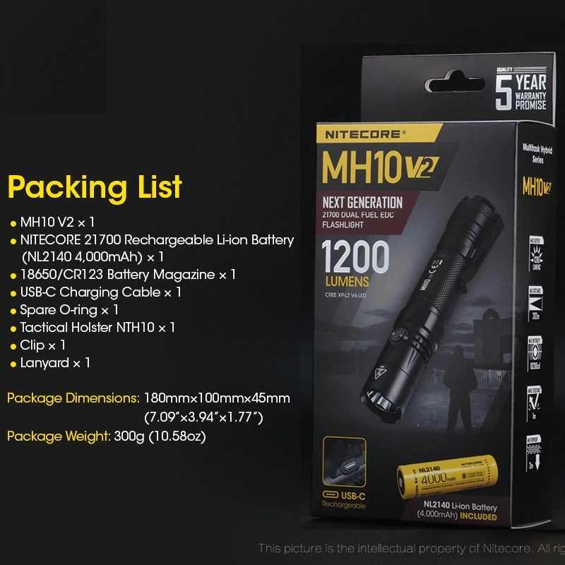 Spesifikasi NITECORE Senter CREE XP L2 V6 LED IP68 1200 Lumens - MH10 V2 Tipe LED : CREE XP L2 V6 Lumens : 1200 Lumens Jarak Penerangan : Jarak Sinar Maksimal: 220 yard