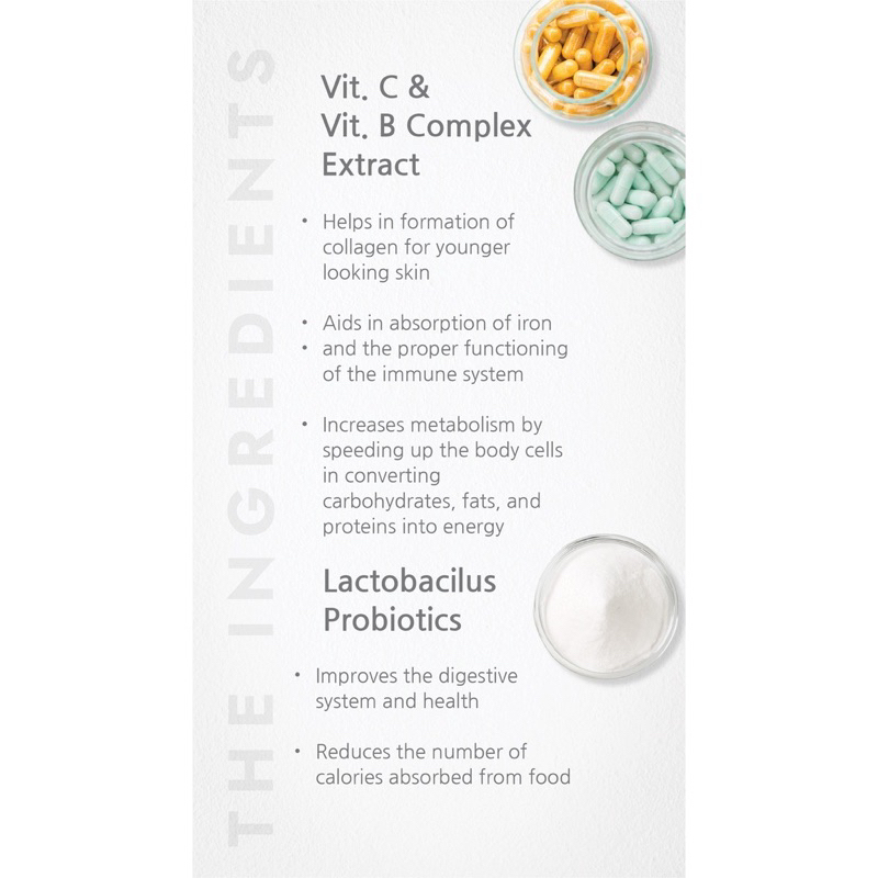 Beserta kandungan lain nya: Inulin, Bit Merah, Vitamin C, Vitamin B Kompleks yang di diproses menggunakan teknologi di Korea