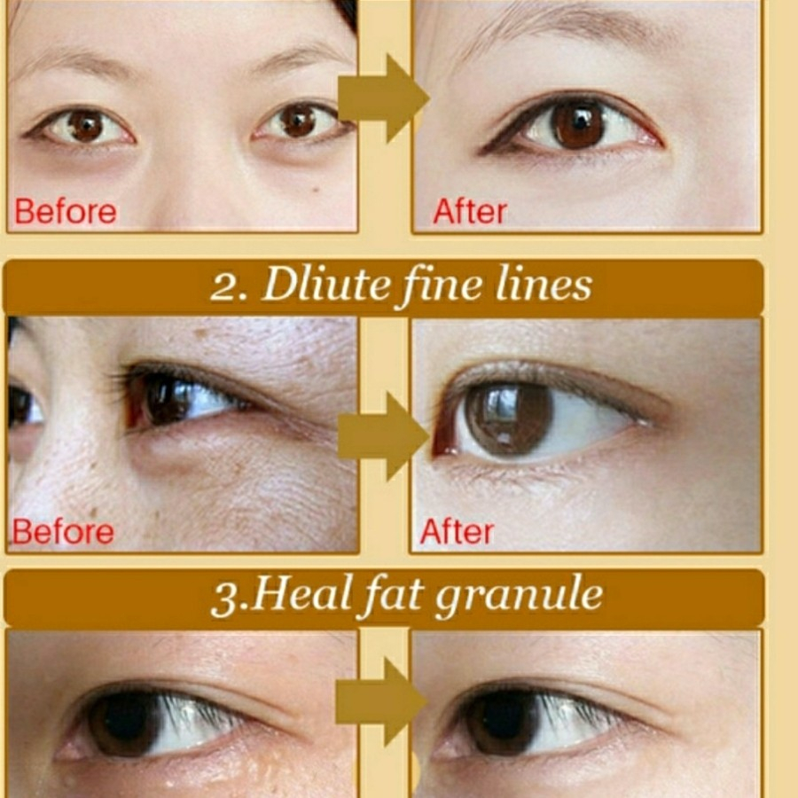Manfaat : 1. Menghilangkan lingkaran hitam dan kantung mata, 2. Menghilangkan garis-garis halus (Anti-wrinkle dan mengurangi keriput halus di mata) 3. Menghilangkan kelelahan mata, 4. Mengencangkan kulit dibawah mata. 5. Melembabkan kulit sekitar mata. 6. Membuat mata menjadi fresh dan segar kembali.