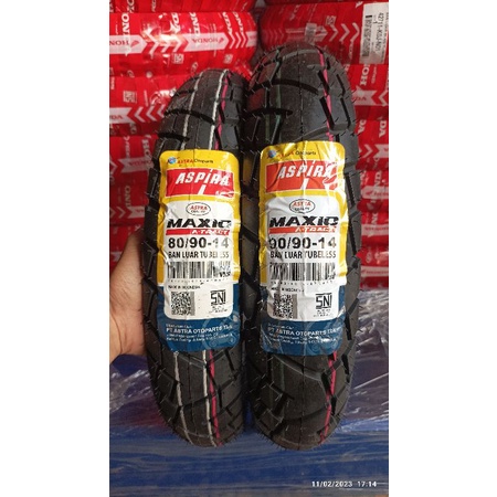 Detail sepasang new ban tubles aspira a-tract, 80/90-14 & 90/90-14. free pentil !!!