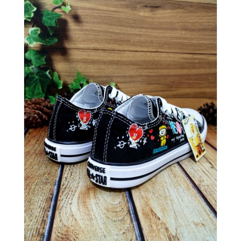 sepatu anak converse anak bts bt21 warna hitam sepatu sekolah anak sepatu anak laki laki dan sepatu anak perempuan berkualitas premium