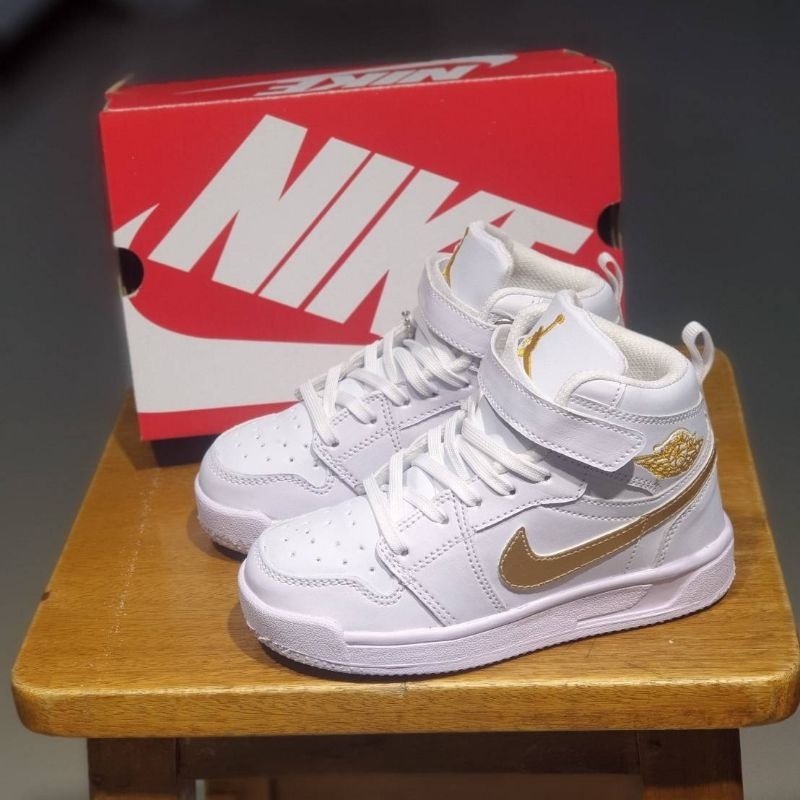 Detail Sepatu Anak Jordan Putih Lis Gold Laki Laki Perempuan Sepatu Sneakers Boots Premium