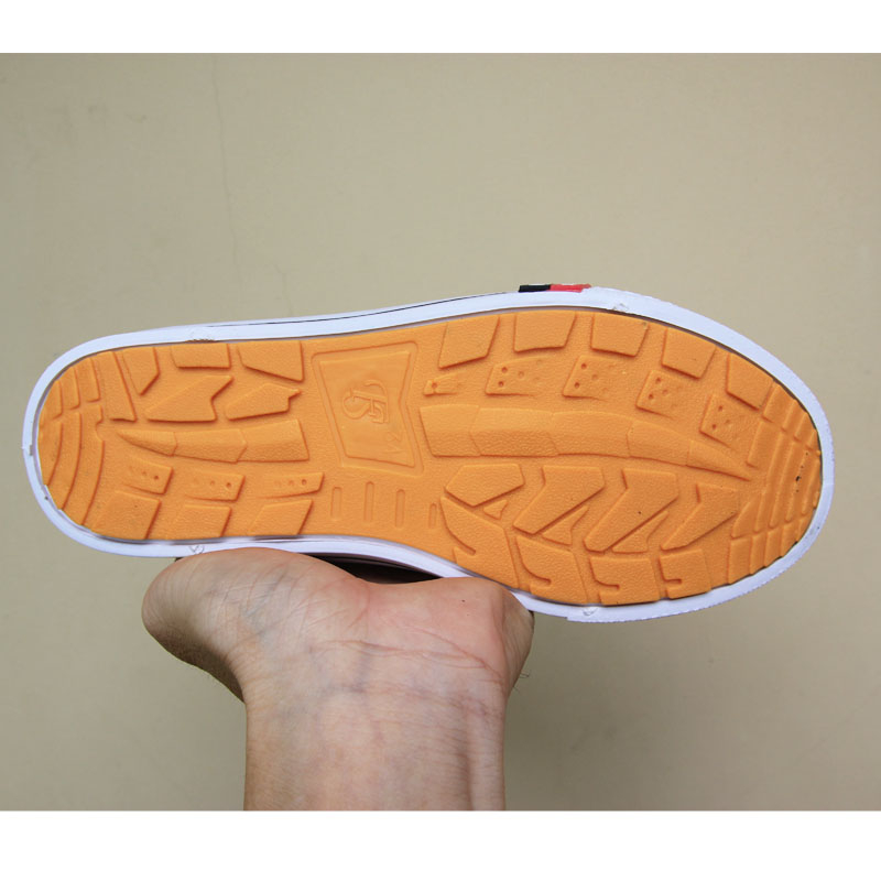 Bahan : sol karet kuning pvc, karet putih, textil, eva warna : hitam/putih Size : 34-43