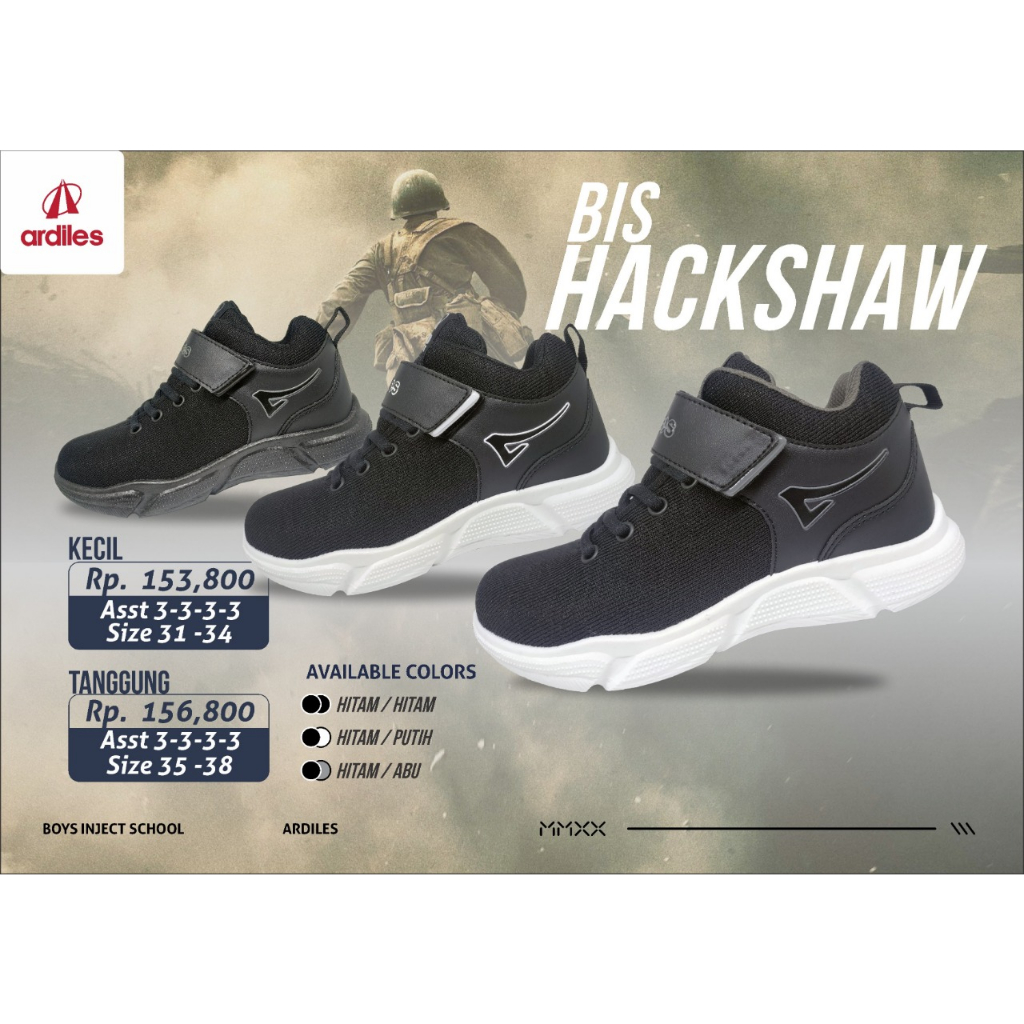 HACKSHAW HITAM/ABU-ABU, sepatu berkualitas untuk si kecil yang keren dan fashionable. Koleksi sepatu Ardiles ini terbuat dari material yang kuat, sehingga awet dalam pemakaian.
