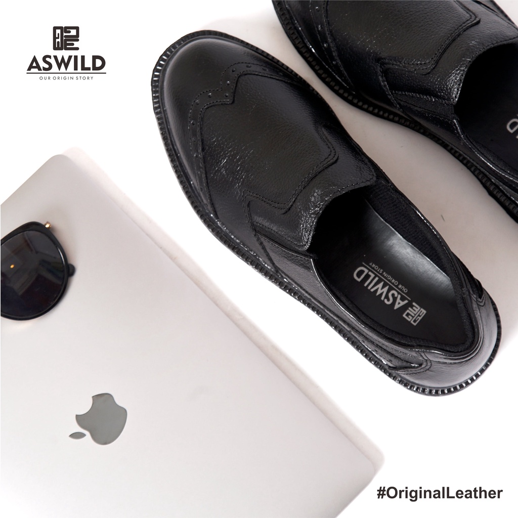 Detail Sepatu ASWILD loafers kulit hitam pria original - Omoshiroi Leather