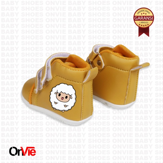 Detail Sepatu Baby Boots Bunyi Motif Animal sheep Laki-Laki Usian 6-12 Bulan Prewalker Motif Binatang Kambing