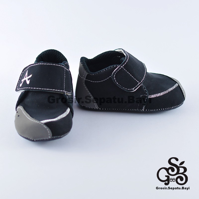 Detail sepatu bayi baby shoes prewalker laki laki umur 2 - 14 bulan model casual A warna HITAM