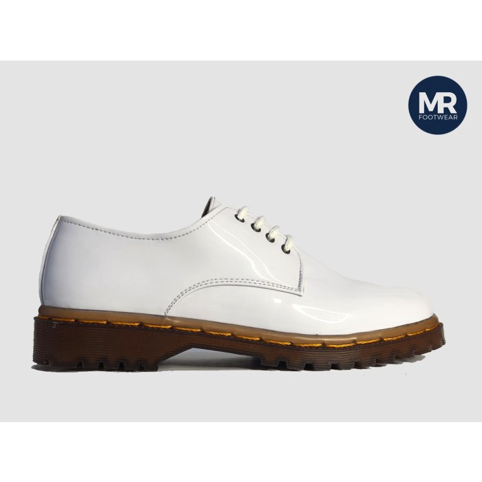 Detail Sepatu Boots Wanita - Munich Patent S-Leather - White Putih - MR Footwear (Outsole Docmart atau Dr. Martens)