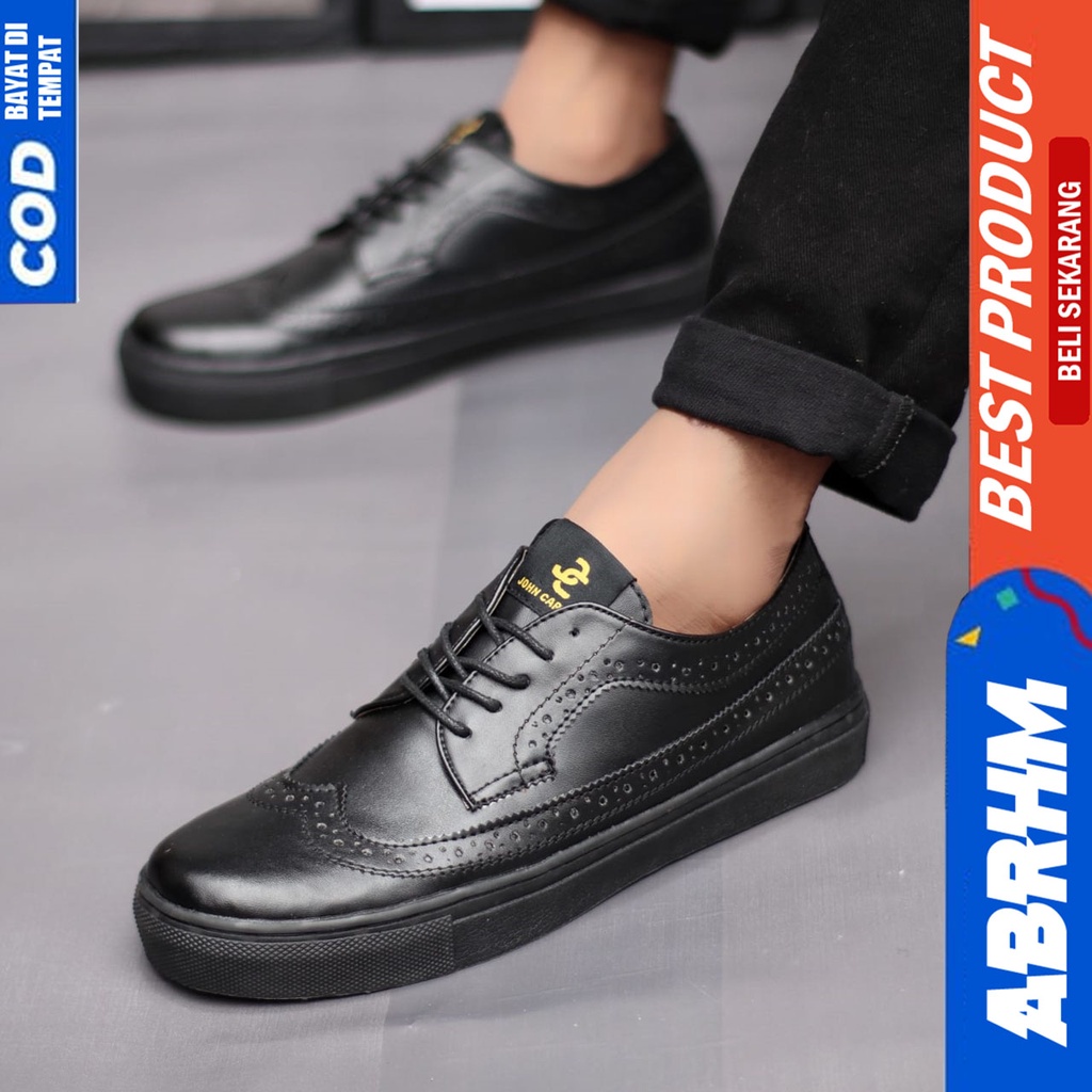 Detail Sepatu Casual Sneakers Pria Hitam Kerja Kantor Abrhm Lonwing