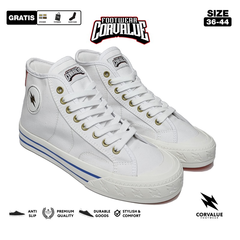 Detail SEPATU CORVALUE FOOTWEAR - Sepatu Sneakers Kasual Pria Wanita Hayabusa Fullwhite High Original