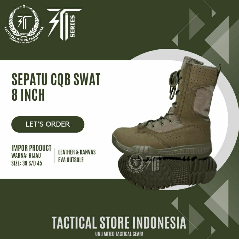 NEW STOCK! Sepatu CQB Swat Impor Original - Green Army - Sepatu PDL Hijau Brimob / TNI / Polisi