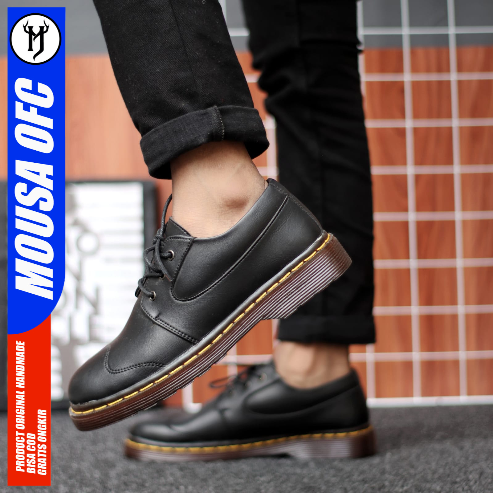 Detail Sepatu Docmart Formal Casual Boots Pantofel Kerja Pria Hitam Mousa Ade