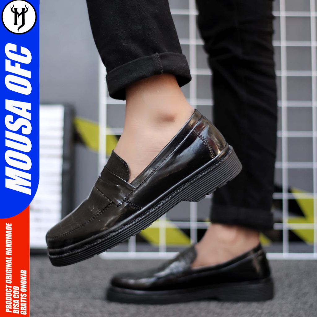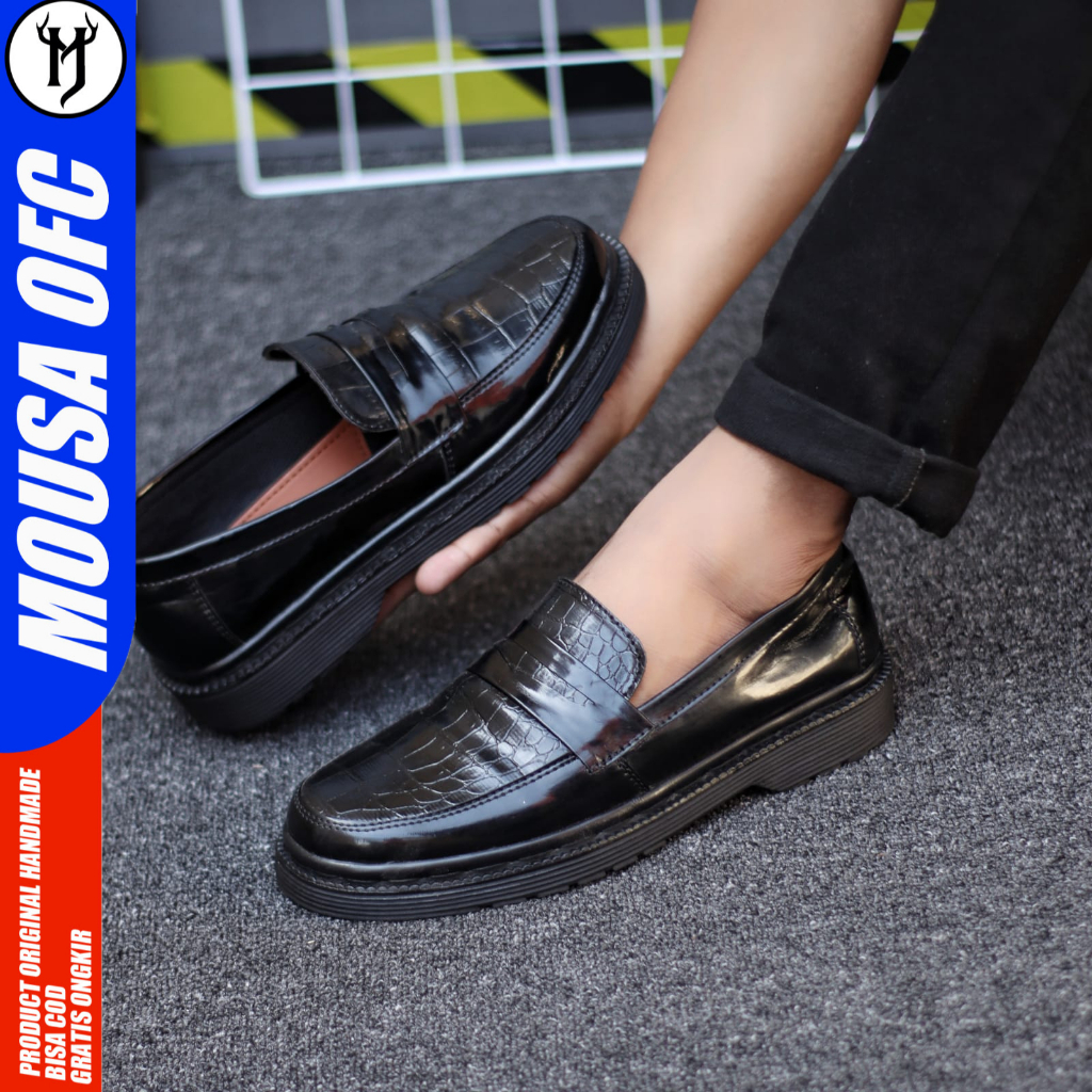 Detail Sepatu Docmart Loafers Pantofel Formal Hitam Pria Babayo
