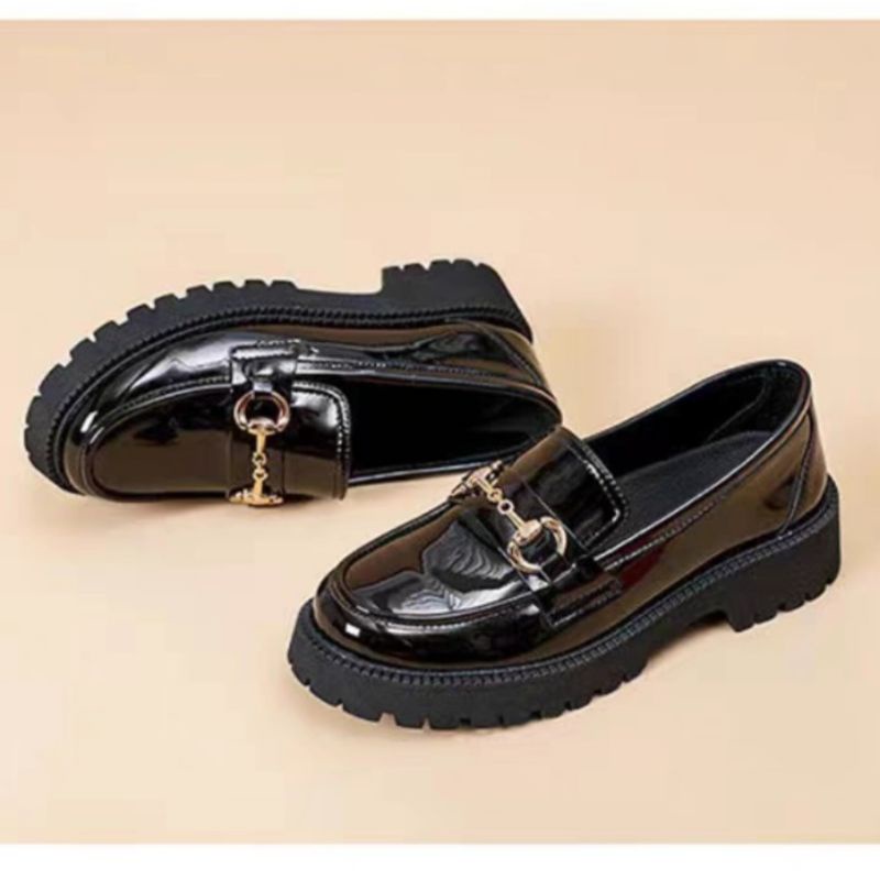 Sepatu Wanita > Loafers & Boat Shoes > Sepatu Docmart Wanita Hitam Glosy Hak Datar Kasual Import Premium DF 566 Sepatu Flat Loafers Kulit Cewek Kekinian Fashion Korean Style 8045