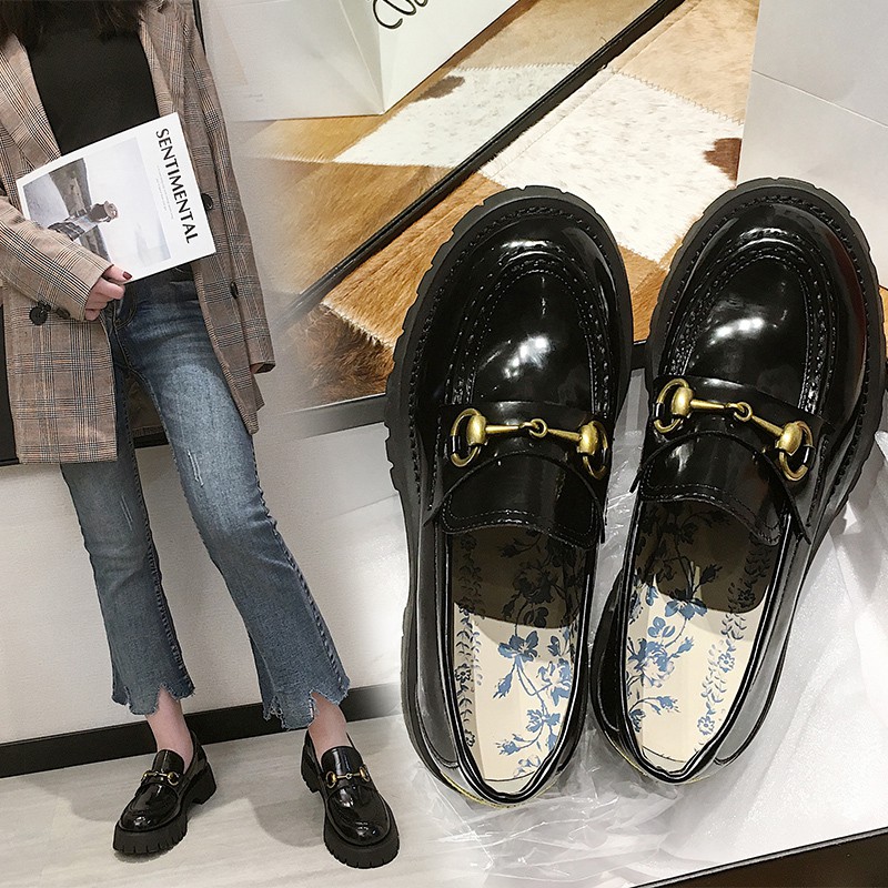 Detail Sepatu flats Loafers slip on Bahan Kulit Gaya Harajuku Ulzzang Untuk Wanita 36-40