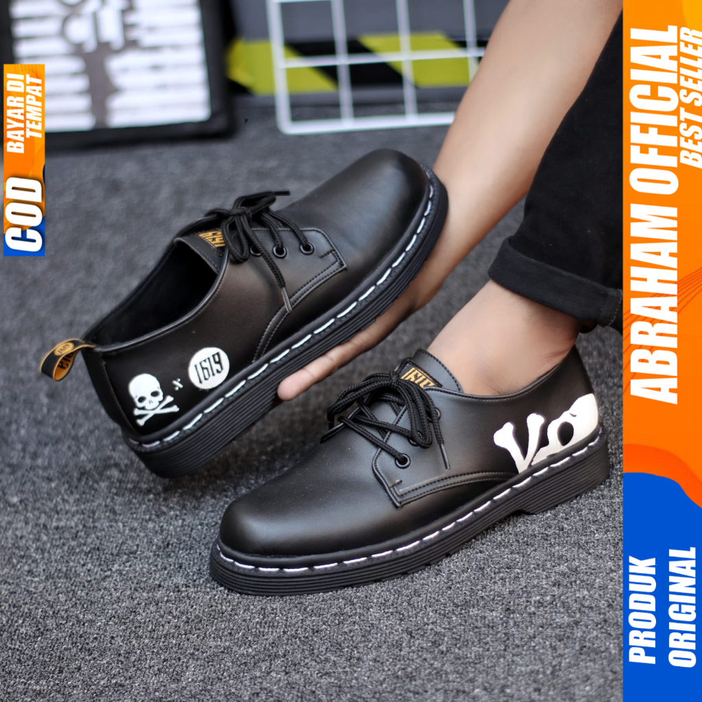 Detail Sepatu Formal Docmart Low Boot Pantofel Kerja Hitam Pria Abraham