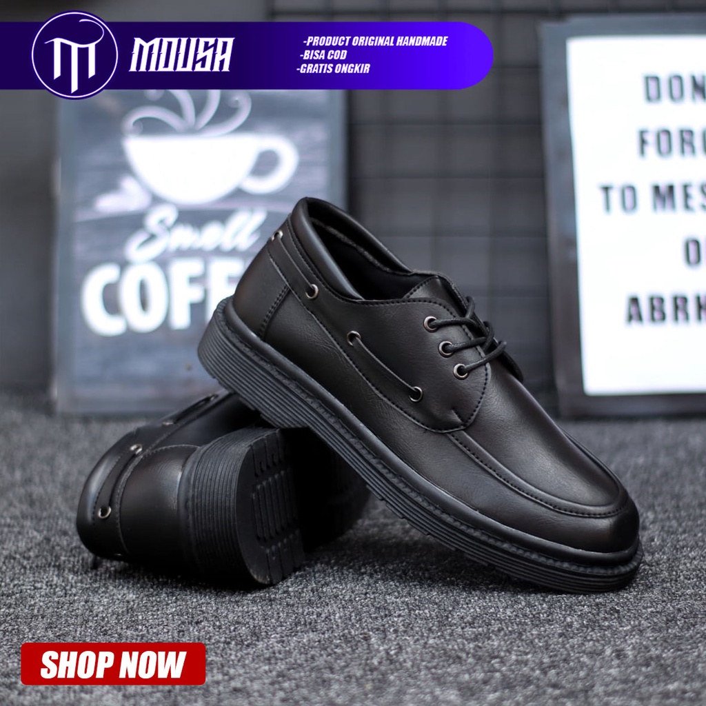 Detail Sepatu Formal Docmart Low Boots Kulit Syntetic Pria Hitam Mousa Leorio